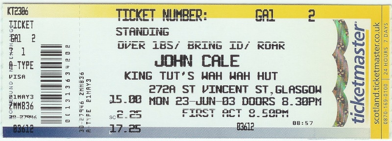 Ticket Stub Bochum 2000-09-15 - Thanks: Bernd-Jürgen Grude London 2002-07-13 show ticket - Thanks: Gary Fox Glasgow 2003-06-23 ticket - Thanks: Gordon Lyon Manchester 2002-06-26 show ticket - Thanks: Gary Fox London 2003-07-14 show ticket - Thanks: Gary Fox Ticket Stub Krefeld 2003-11-27 - Thanks: Bernd-Jürgen Grude Ticket Stub Duisburg 2004-04-24 - Thanks: Bernd-Jürgen Grude London 2005-06-25 show ticket - Thanks: Gary Fox Cardiff 2005-10-01 show ticket - thanks: Gary Fox Glasgow 2006-01-28 ticket - Thanks: Gordon Lyon Cologne 2006-02-05 Ticket - Thanks: Bernd-Jürgen Grude Glasgow  <a href="../setlists/2007_01_22.html">2007-01-22</a> show ticket - Thanks: Gordon Lyon Sheffield  <a href="../setlists/2007_01_25.html">2007-01-25</a> show ticket Breda 2007-02-15 show ticket Cardiff 2009-11-21 ticket - - thanks: Gary Fox Cardiff 2009-11-21 ticket - thanks: Gordon Lyon